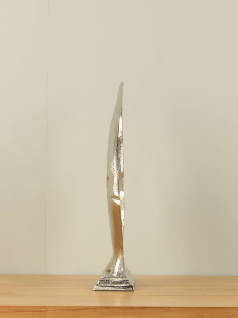 Der stabile Sockel sorgt für Standfestigkeit, während das Aluminiummaterial Langlebigkeit und eine hochwertige Optik garantiert. Jedes Stück ist handgefertigt, wodurch leichte Abweichungen möglich sind – jede Skulptur ist somit ein Unikat.