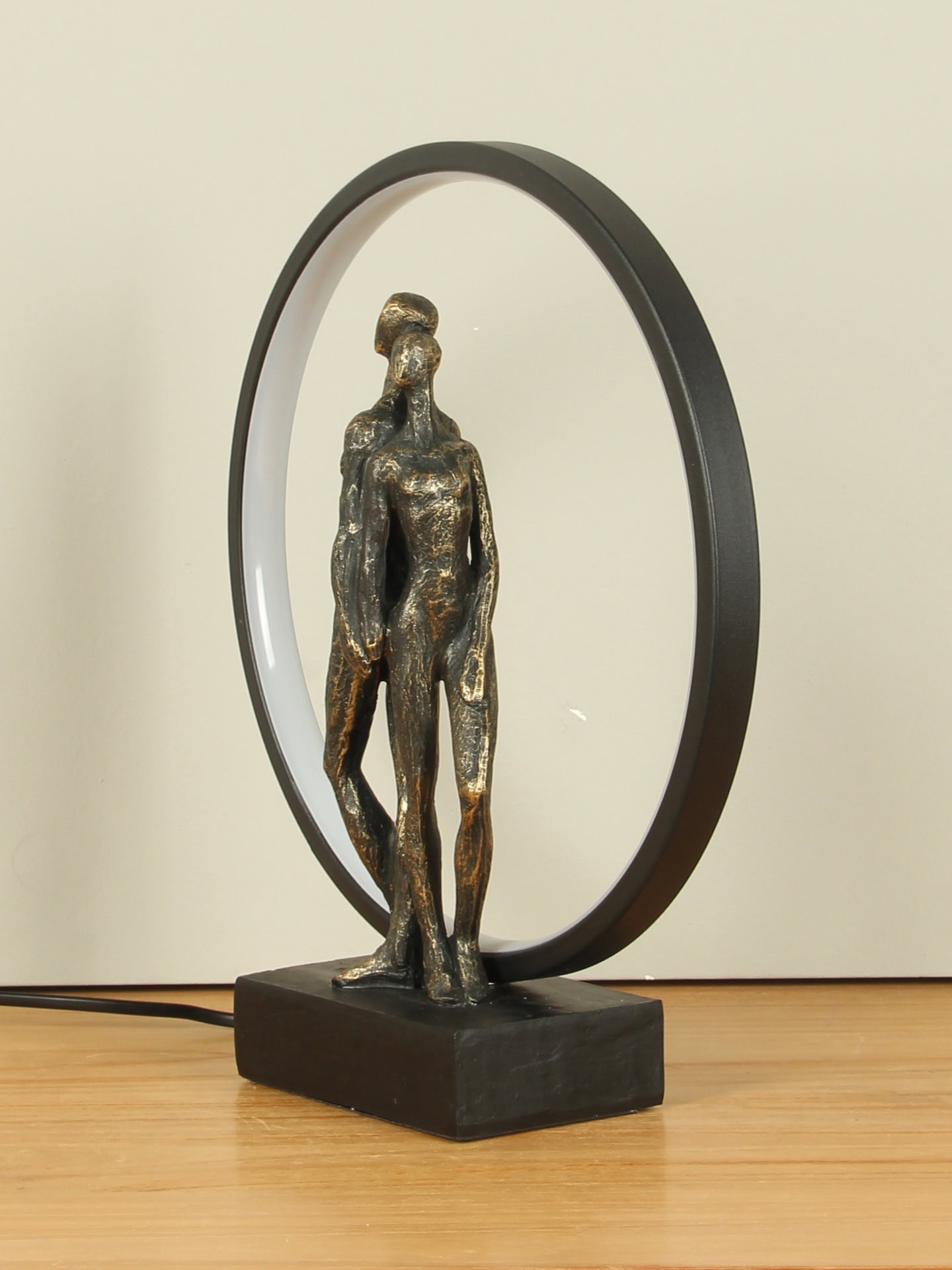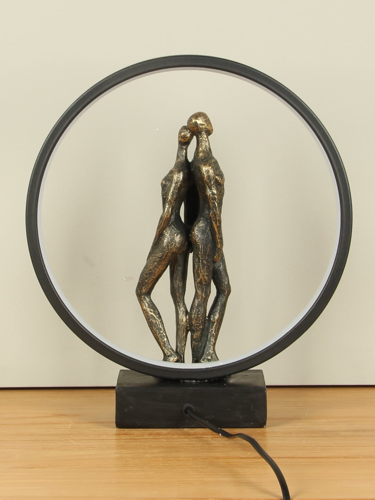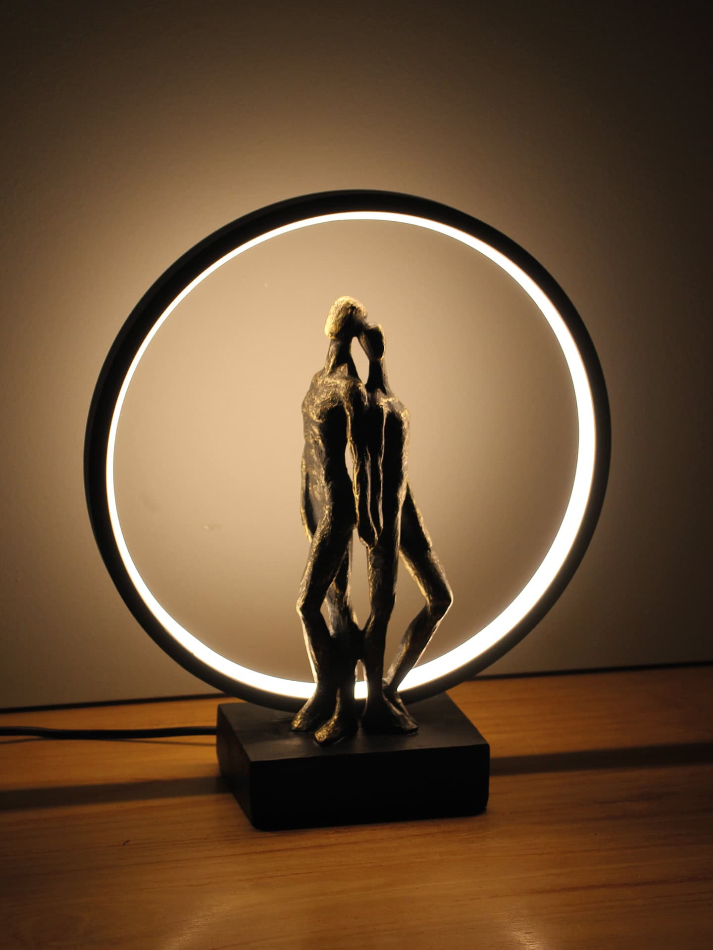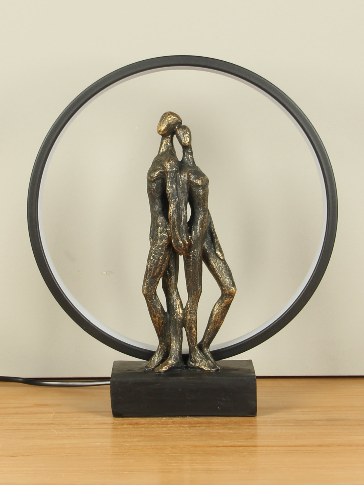 Die bronzefarbene Statue „Endlose Verbindung“ symbolisiert unendliche Liebe und Verbundenheit. Mann und Frau stehen Rücken an Rücken in einem beleuchteten Kreis und stehen so für grenzenlose Einheit. Die dezente LED-Beleuchtung verleiht der Statue einen charmanten Touch. Ein besonderes Geschenk zur Hochzeit, zum Jahrestag oder für andere gemeinsame Momente. Nur für den Innenbereich geeignet.