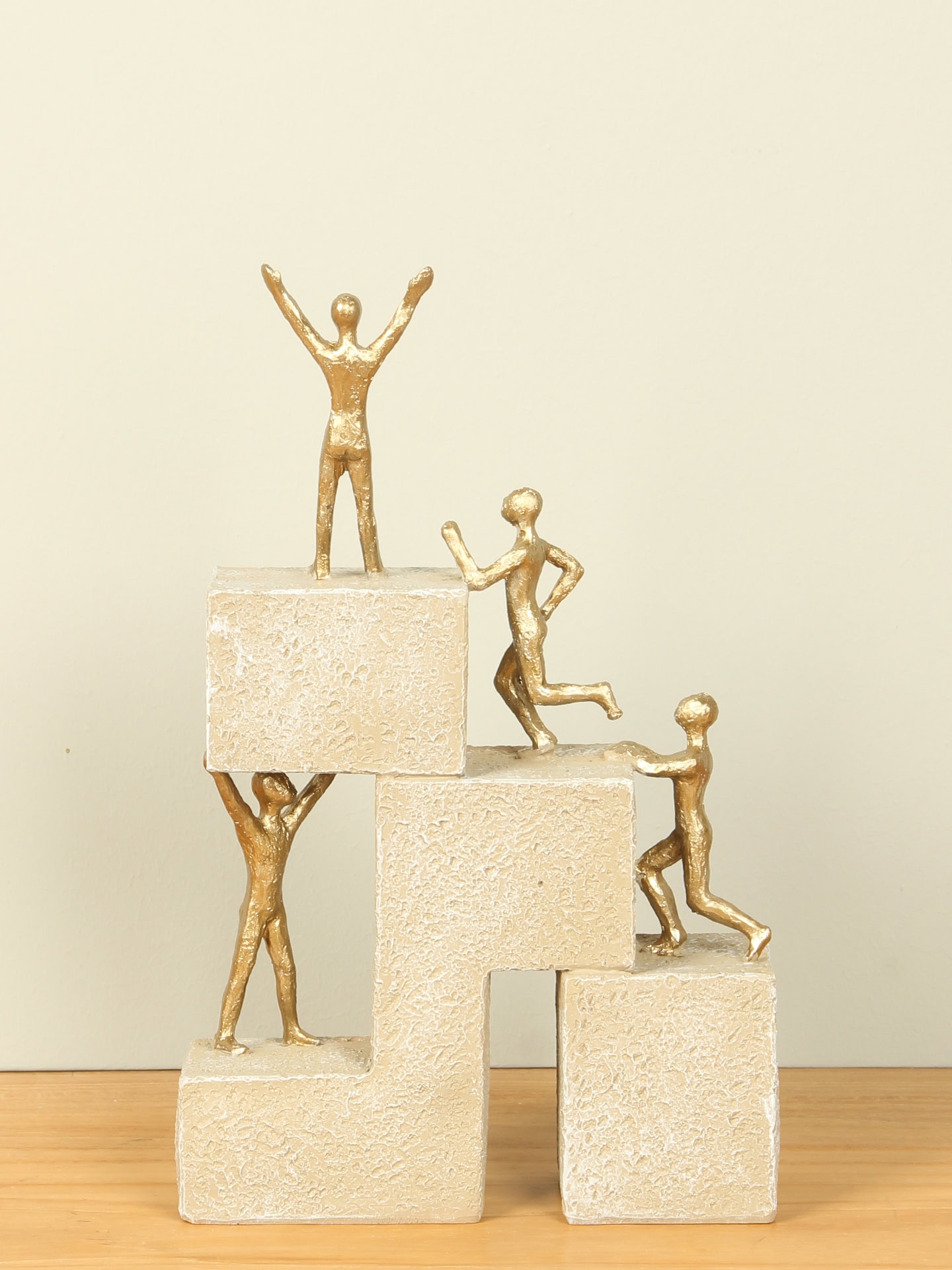 Die Figur „Der Weg nach oben“ zeigt mehrere Personen, die sich gegenseitig helfen, eine höhere Ebene zu erreichen – ein eindrucksvolles Symbol für Wachstum, Zusammenarbeit und Erfolg. Die goldfarbene Oberfläche verleiht ihr eine warme, moderne Ausstrahlung. Dieses Dekorationsobjekt ist aus Polystone gefertigt, nur für den Innenbereich geeignet und ein inspirierender Blickfang.
