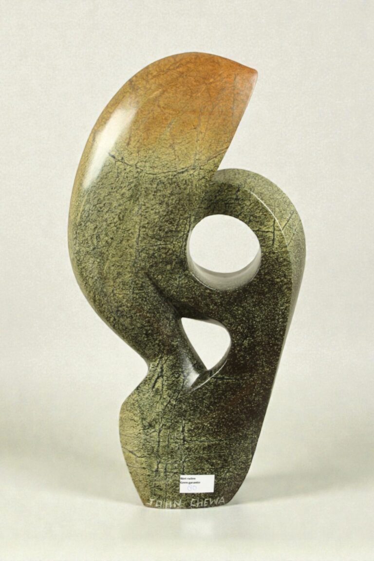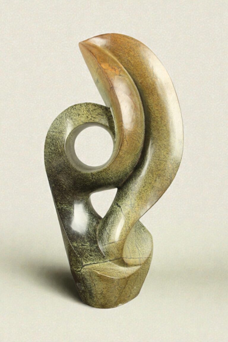 Diese Natursteinstatue aus Simbabwe wurde von einem einheimischen Künstler sorgfältig und fachmännisch handgefertigt. Jede Statue ist ein Unikat – Sie holen sich also ein wahrhaft einzigartiges Kunstwerk nach Hause.