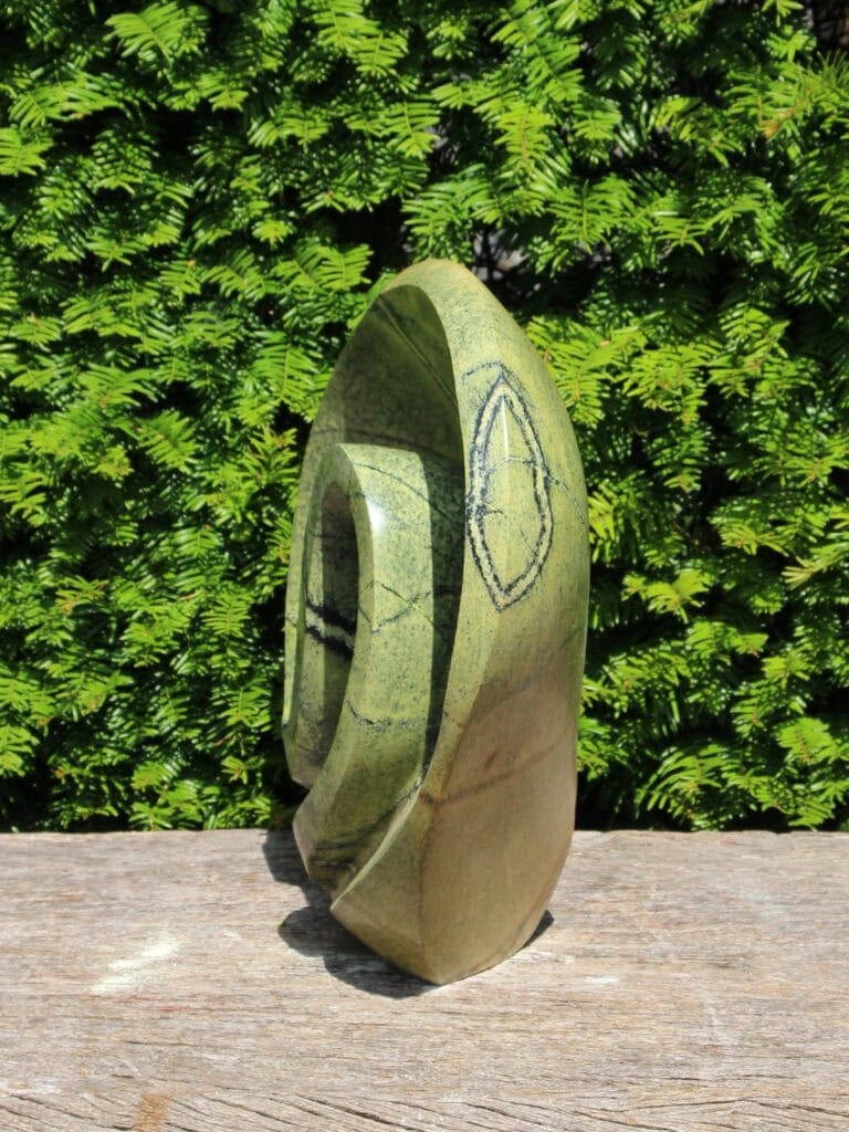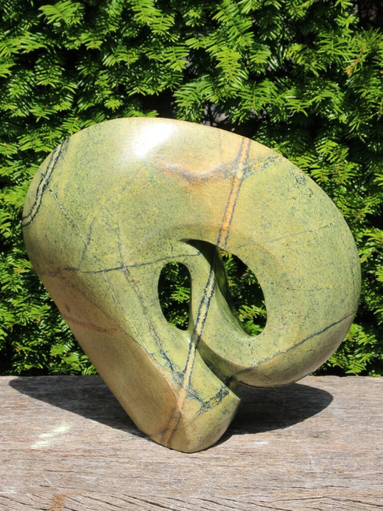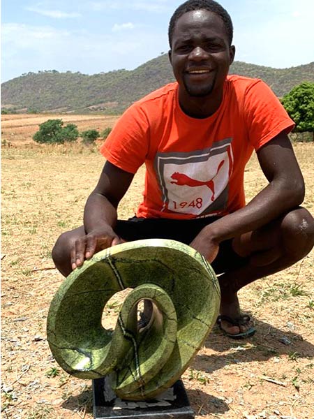 Diese Natursteinstatue aus Simbabwe wurde von einem einheimischen Künstler sorgfältig und fachmännisch handgefertigt. Jede Statue ist ein Unikat – Sie holen sich also ein wahrhaft einzigartiges Kunstwerk nach Hause.