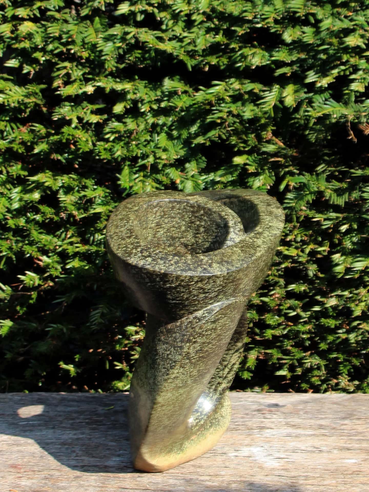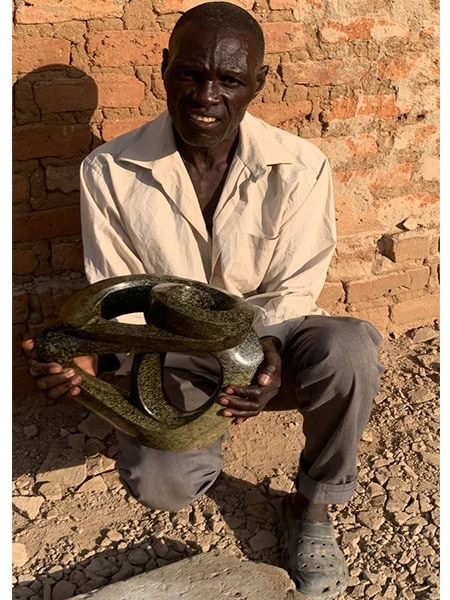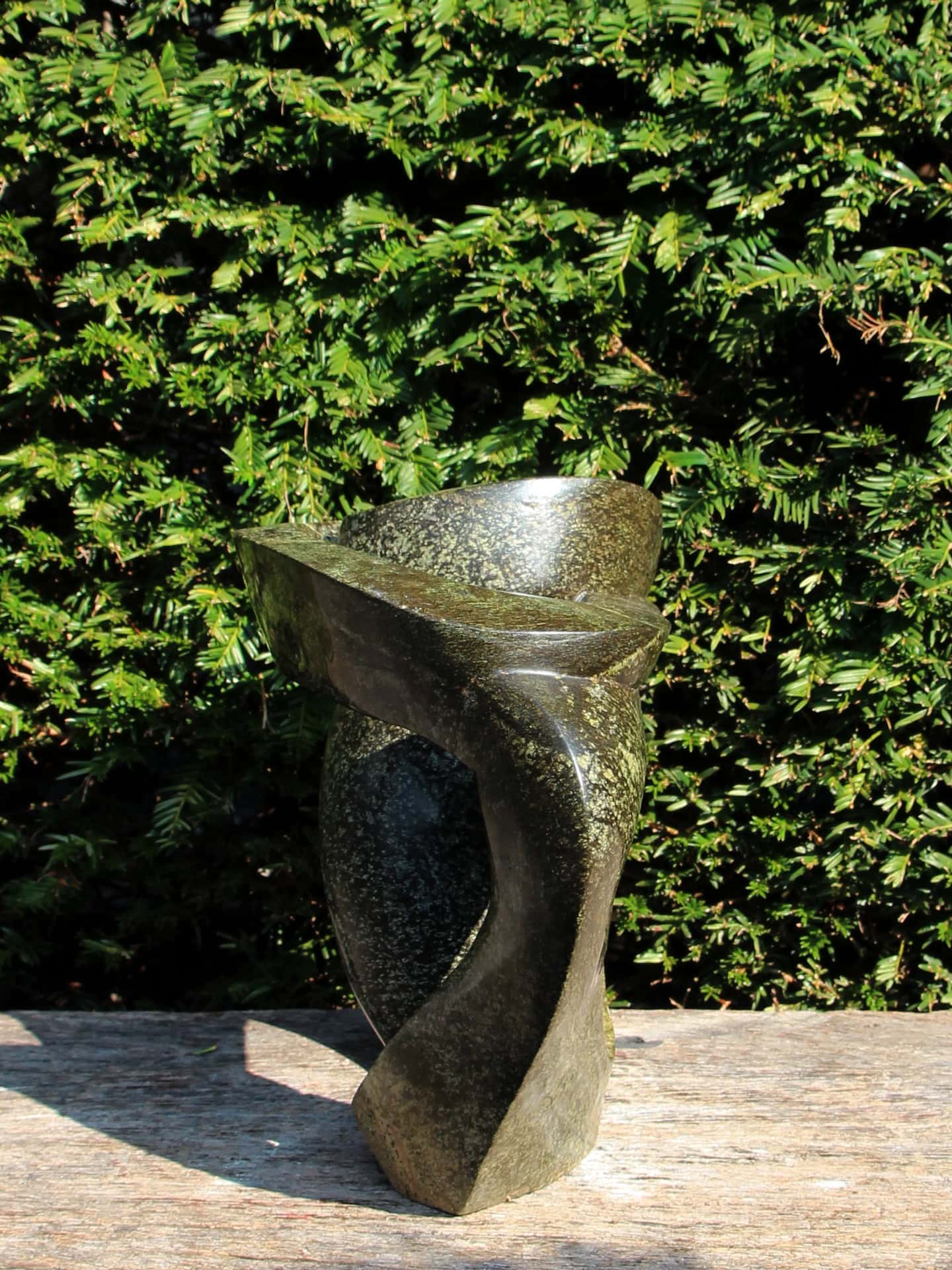 Diese Natursteinstatue aus Simbabwe wurde von einem einheimischen Künstler sorgfältig und fachmännisch handgefertigt. Jede Statue ist ein Unikat – Sie holen sich also ein wahrhaft einzigartiges Kunstwerk nach Hause.