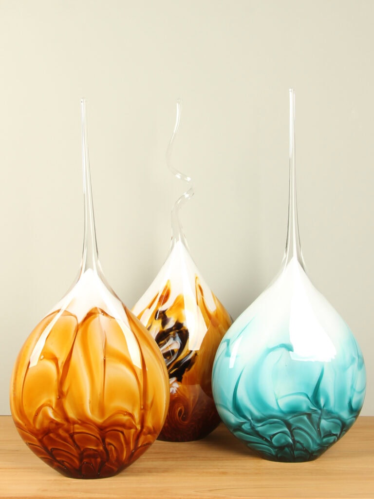 Eine Glaslampe von Arno France ist mehr als nur eine Leuchte – sie ist ein skulpturales Statement, das einen Raum mit Wärme, Kunst und Handwerkskunst bereichert.