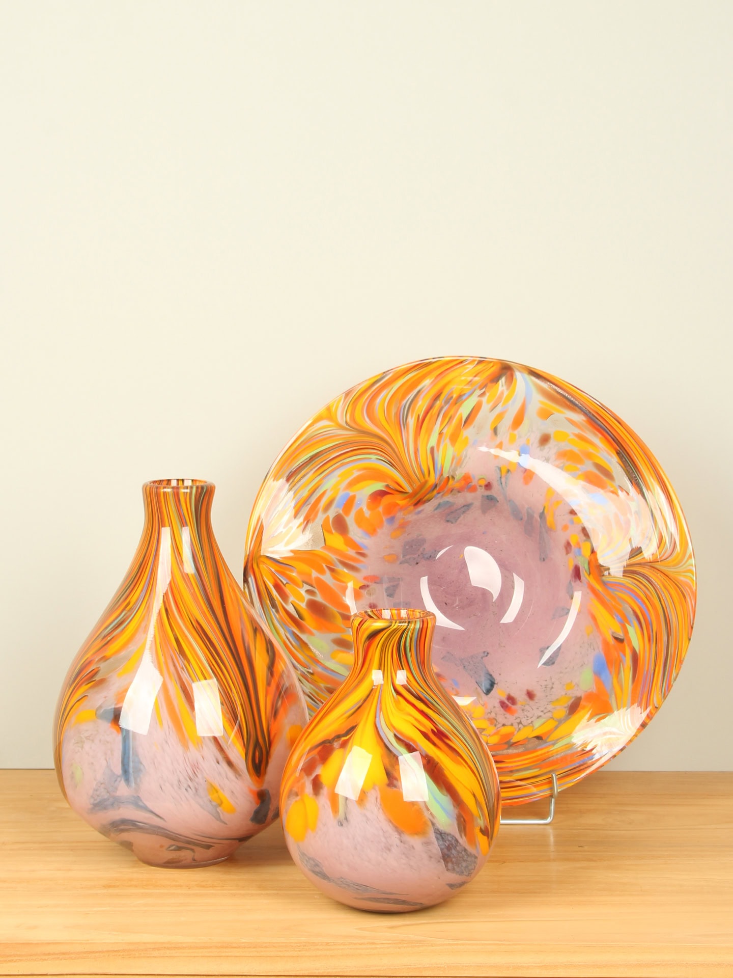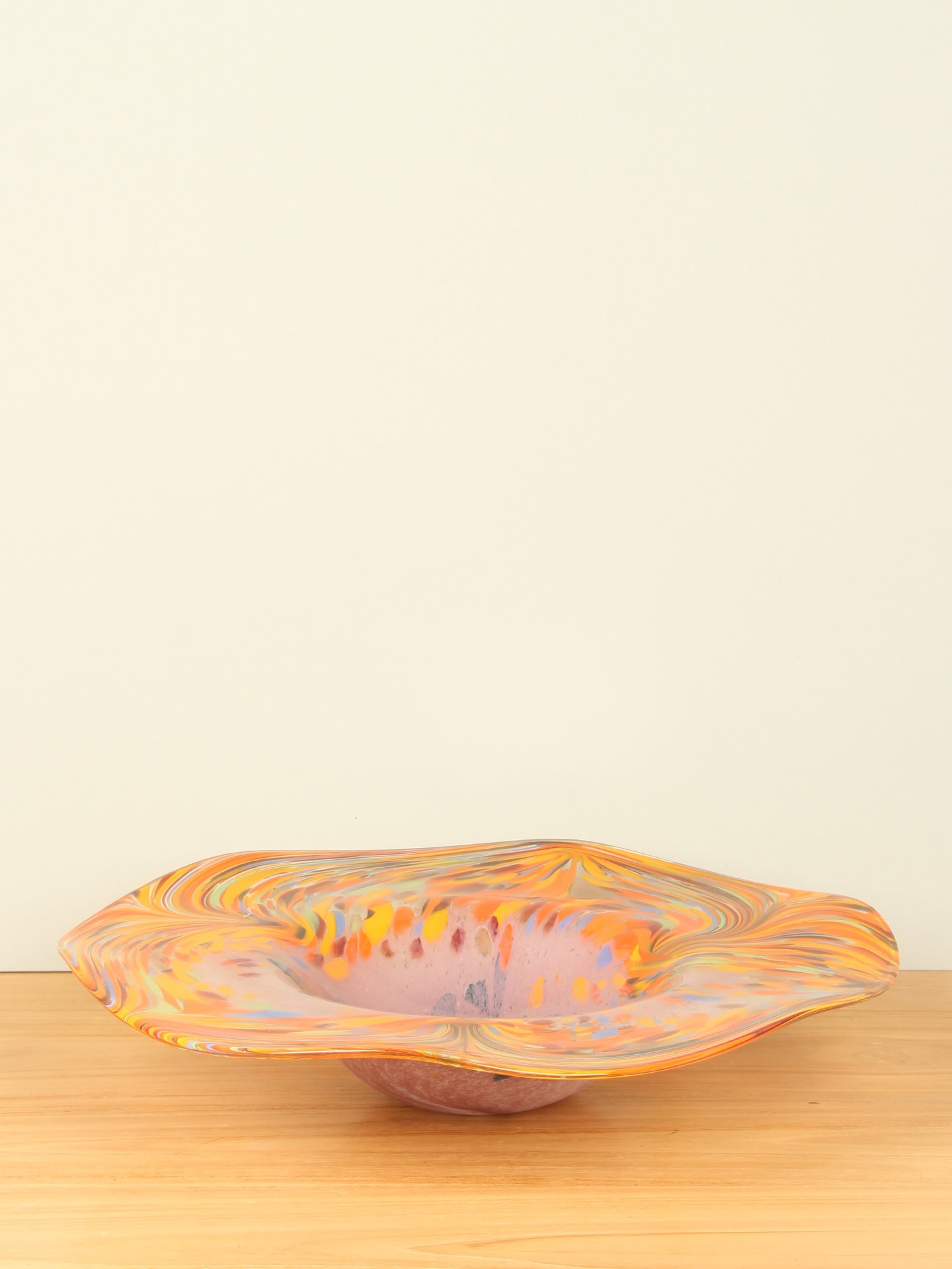 Diese Glasschale ist das Ergebnis reiner Handwerkskunst: ein Zusammenspiel von Hitze, Bewegung und Farbe, das nur beim Glasblasen entsteht. Während das flüssige Glas gedreht und geformt wird, entstehen unvorhersehbare Muster. Mal kraftvoll und ausdrucksstark, mal fließend und sanft – aber immer einzigartig. Keine Schale gleicht der anderen, und genau das macht dieses Objekt so besonders.