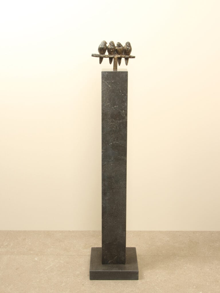 Skulptur für drinnen oder draußen – Bronze – 4 Sittiche – 10x17x5 cm