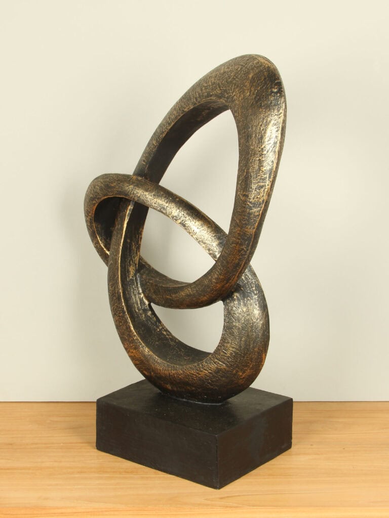 Der stabile Sockel gewährleistet einen sicheren Stand und ermöglicht die Präsentation der Skulptur auf einem Schrank, Tisch, Podest oder im Garten. Dank ihres abstrakten Designs fügt sich die Skulptur perfekt in moderne wie auch klassische Umgebungen ein.
