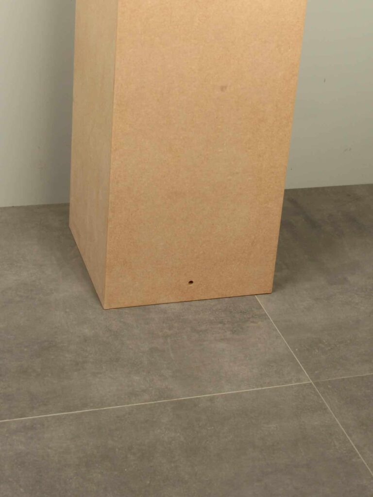 Jeder Sockel wird von einem professionellen Möbelhersteller mit Sorgfalt und handwerklichem Können gefertigt. Die Platten sind nahtlos auf Gehrung geschnitten und aus 18 mm starkem MDF gefertigt, was dem Sockel eine robuste und solide Anmutung verleiht. Die Kanten sind rundum leicht abgerundet und anschließend professionell mit einer Möbellackiermaschine lackiert. Die seidenmatte Oberfläche in tiefem Schwarz (RAL 9005) verleiht dem Sockel eine ruhige, elegante Optik, die sich ideal für moderne Interieurs, Ausstellungsräume, Eingangsbereiche und Galerieräume eignet.