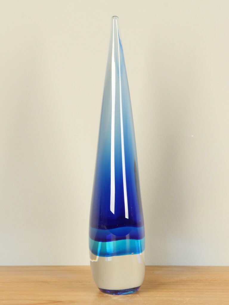 Dieses einzigartige Glaskunstwerk ist das Ergebnis eines handwerklichen Prozesses, der Glas, Farbe und Bewegung vereint. Während der Glasbläser arbeitet, verschmelzen Farbtöne, Linien formen sich auf ihre eigene Weise, und das Glas entsteht zu einer unverwechselbaren Skulptur. Keine Maschine kann diese Nuancen reproduzieren – dieses Objekt trägt die Handschrift des Handwerksprozesses und damit seine eigene Seele.