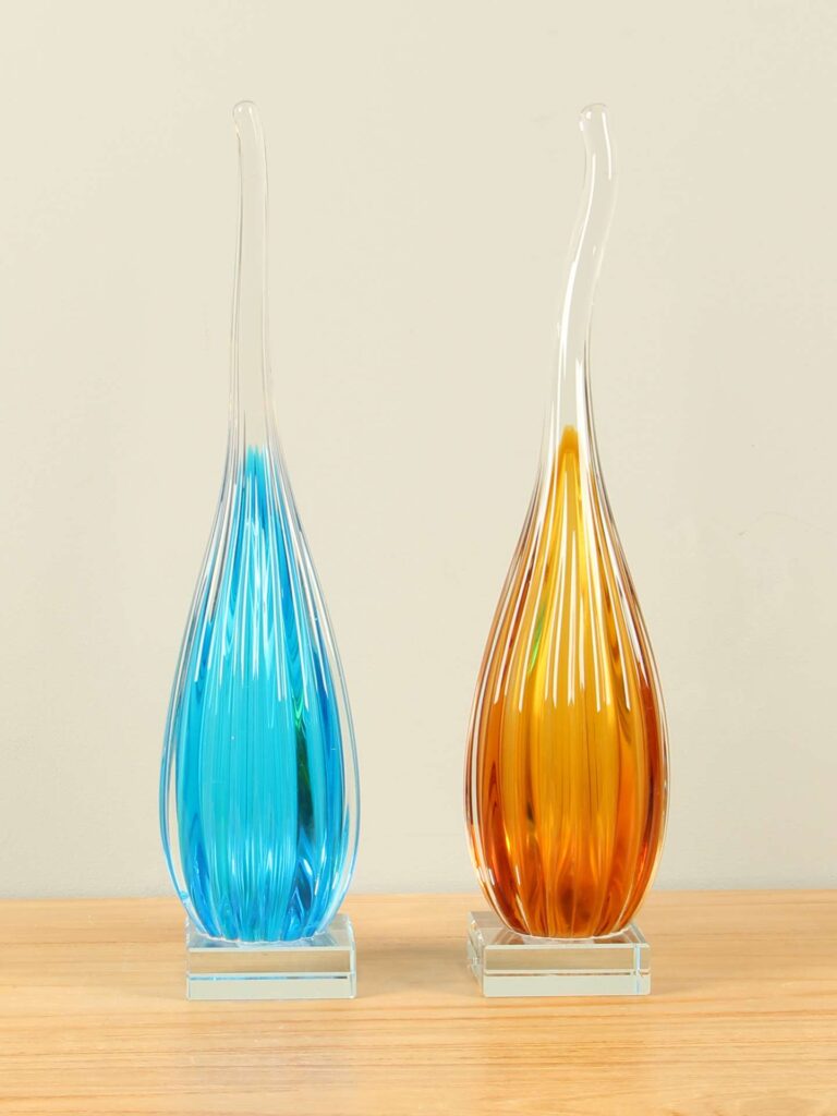 Dieses einzigartige Glaskunstwerk ist das Ergebnis eines handwerklichen Prozesses, der Glas, Farbe und Bewegung vereint. Während der Glasbläser arbeitet, verschmelzen Farbtöne, Linien formen sich auf ihre eigene Weise, und das Glas entsteht zu einer unverwechselbaren Skulptur. Keine Maschine kann diese Nuancen reproduzieren – dieses Objekt trägt die Handschrift des Handwerksprozesses und damit seine eigene Seele.