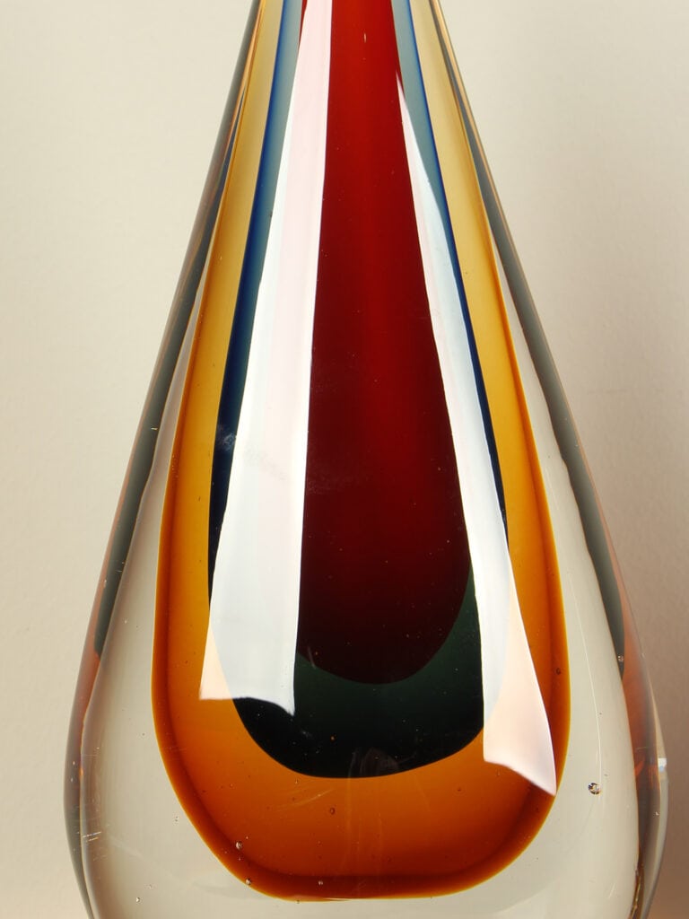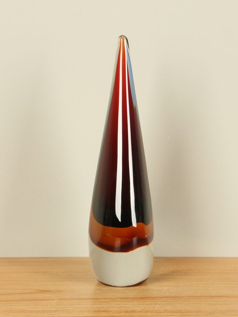 Dieses einzigartige Glaskunstwerk ist das Ergebnis eines handwerklichen Prozesses, der Glas, Farbe und Bewegung vereint. Während der Glasbläser arbeitet, verschmelzen Farbtöne, Linien formen sich auf ihre eigene Weise, und das Glas entsteht zu einer unverwechselbaren Skulptur. Keine Maschine kann diese Nuancen reproduzieren – dieses Objekt trägt die Handschrift des Handwerksprozesses und damit seine eigene Seele.