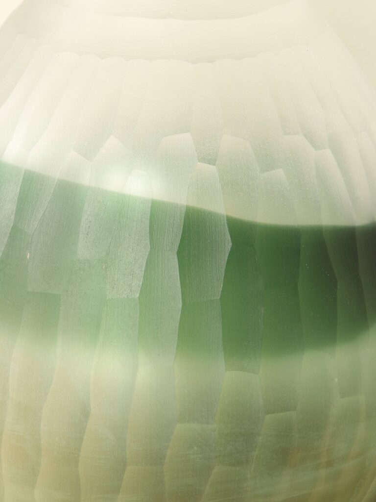 Ob mit oder ohne Blumen, diese Vase ist ein Kunstwerk für sich – ein Objekt, das Atmosphäre schafft und bei jedem Blick neue Details offenbart.