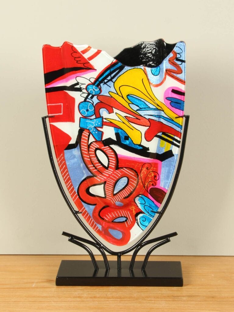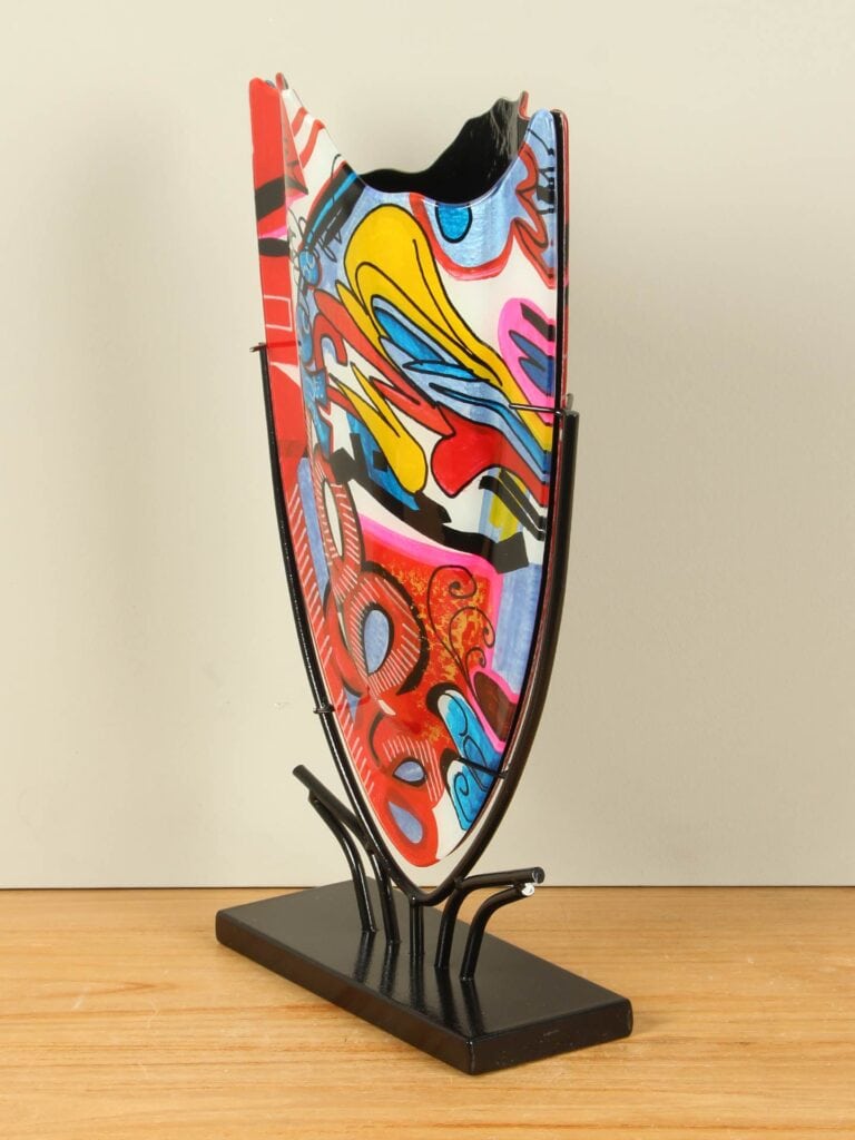 Vase – Multicolor – Glas – Graffiti auf Ständer – 49x29x10 cm