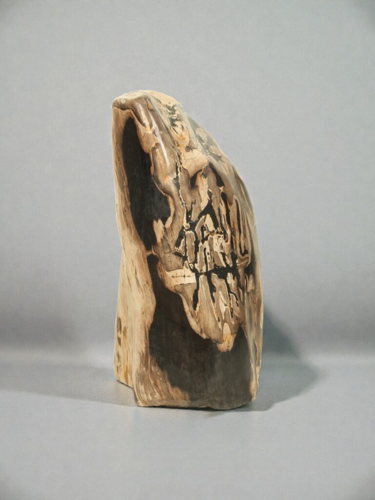 Versteinertes Holz ist wohl eines der außergewöhnlichsten Materialien, die man in Innenräumen oder im Garten verwenden kann. Dieses Stück versteinertes Holz ist wirklich einzigartig – es handelt sich um ein Fossil, das etwa 2 bis 2,5 Millionen Jahre alt ist. Einst ein lebender Baum, wurde er über Millionen von Jahren vollständig in Stein verwandelt. Natürlicher Druck und Mineralisierung haben die Holzzellen unter anderem durch Quarz ersetzt. Dadurch bleibt die ursprüngliche Holzmaserung sichtbar, während das Material die Härte und Beständigkeit von Stein erhält.